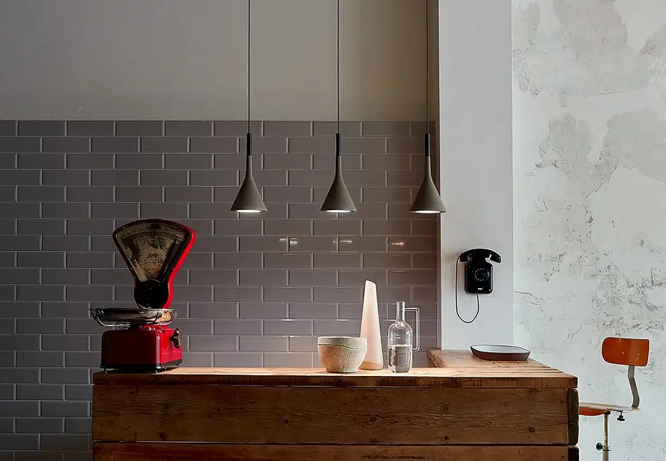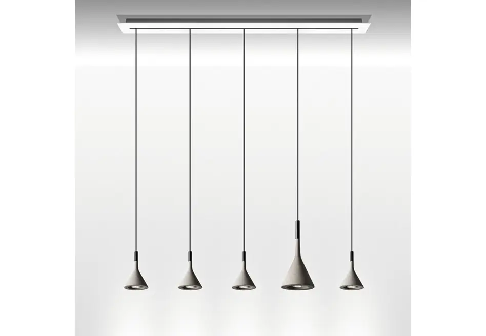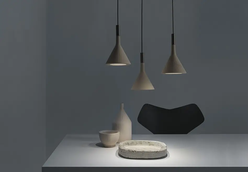 « Petite suspension en ciment proposée en sept finitions chromatiques qui soulignent sa personnalité, en rencontrant des styles diverses: du gris classique du ciment brut, qui donne de la profondeur aux volumes, à l’élégante coloration blanche, à un marron chaud et intense. Les nuances rouge brique, jaune sable et vert olive s’ajoutent ainsi aux teintes déjà disponibles au catalogue. Idéale sur les petites tables, les péninsules , les ilôts, les bars et les comptoirs, seule ou en composition. Aujourd’hui la technologie LED épouse l’attrait matiérique et contemporain du ciment dans une nouvelle version de la lampe Aplomb suspension. La longue durée de la source lumineuse permet de réduire les interventions d’entretien, alors que son efficacité particulière est une valeur ajoutée en termes d’économie énergétique et de durabilité écologique. «