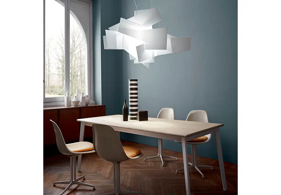 Chaos et géométrie, la suspension Big Bang est un modèle qui ne passe pas inaperçu : une explosion de panneaux imbriqués les uns dans les autres, créant une architecture de surfaces, ombres et lumières très spectaculaire.