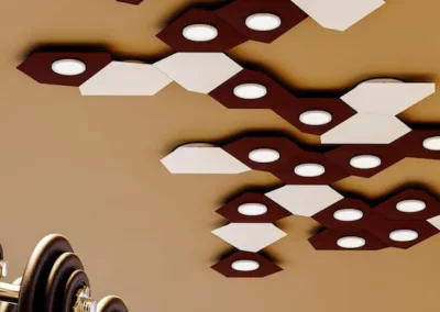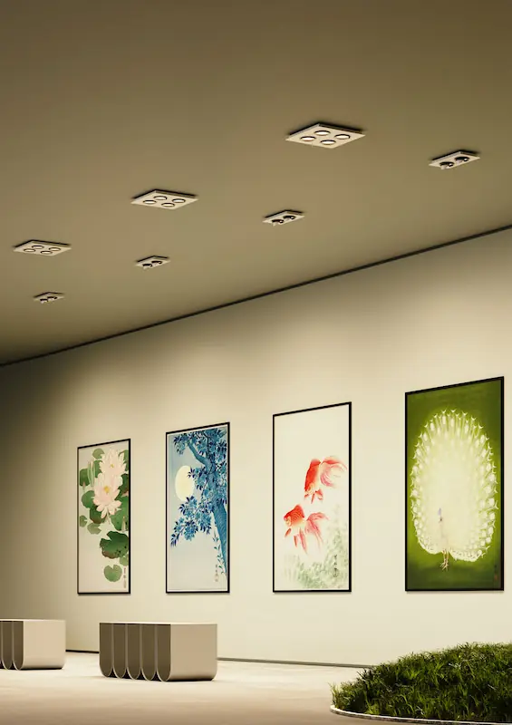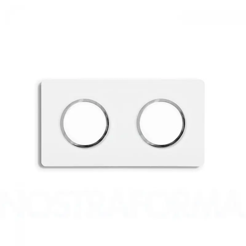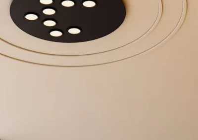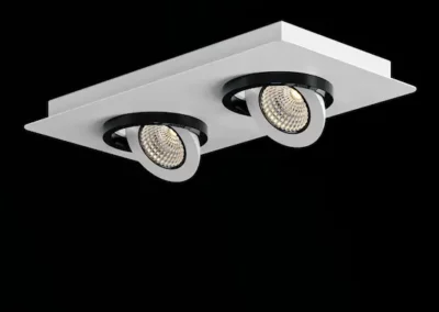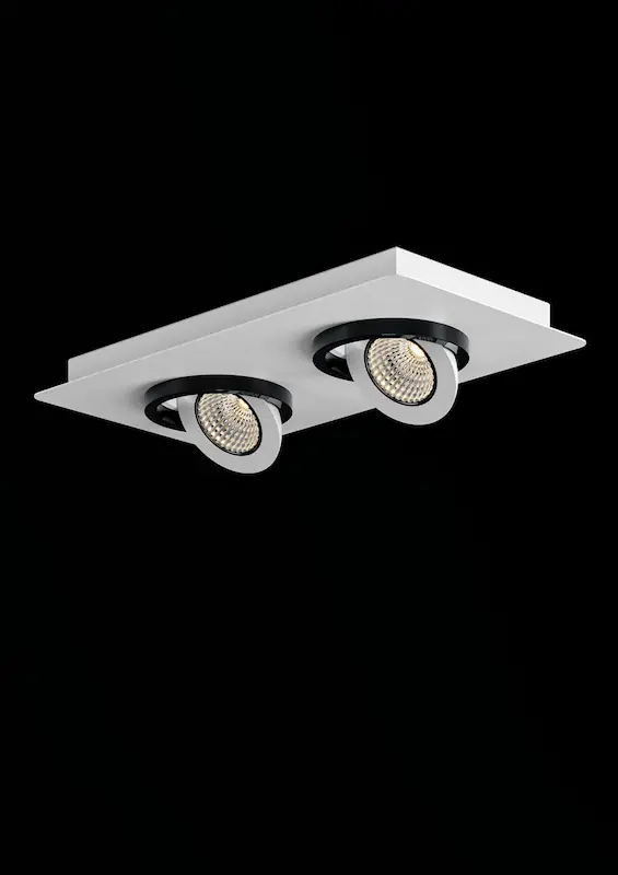 « La naïveté et la rigueur sont combinées dans ce plafonnier au design essentiel, presque graphique. Trois modules de base: un carré et deux rectangles dans lesquels sont inscrits des cercles de lumière. Des briques lumineuses qui peuvent être combinées individuellement ou empilées librement pour créer des solutions géométriques de toute taille et pour tout type de lieu. »