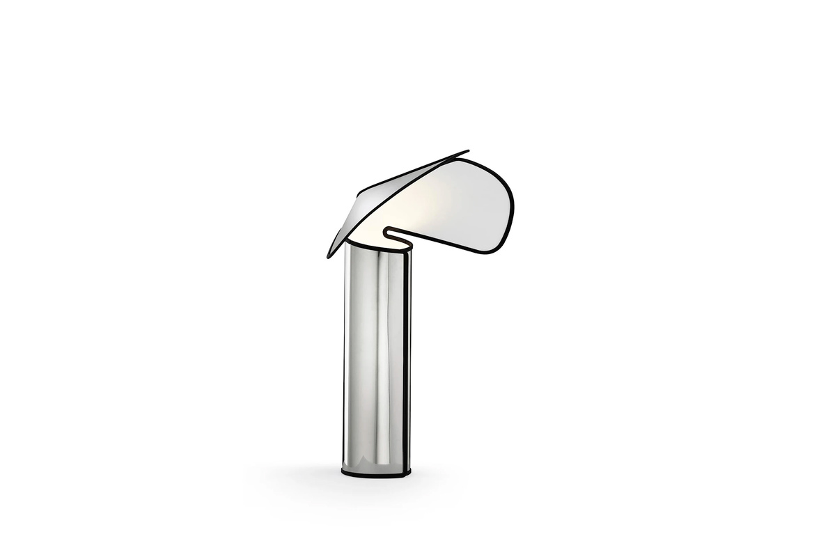 La structure de type origami de Chiara Table dissimule une source à LED variable qui réfléchit et diffuse la lumière par le biais d’un chapeau s’inspirant de la guimpe et du voile d’une religieuse.