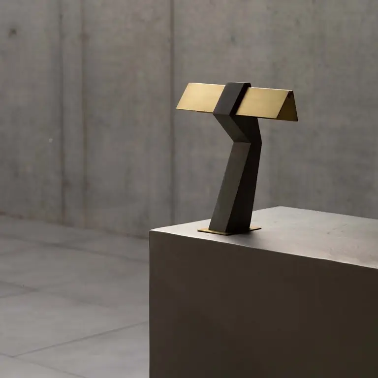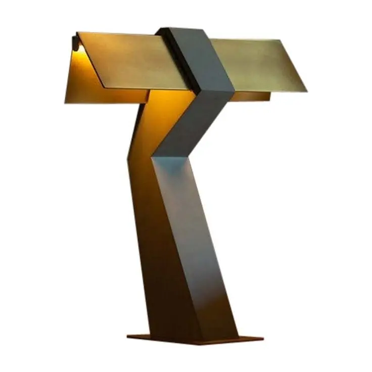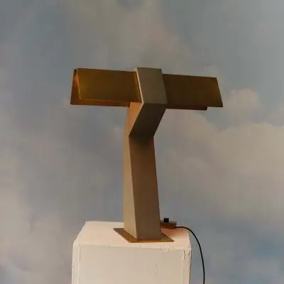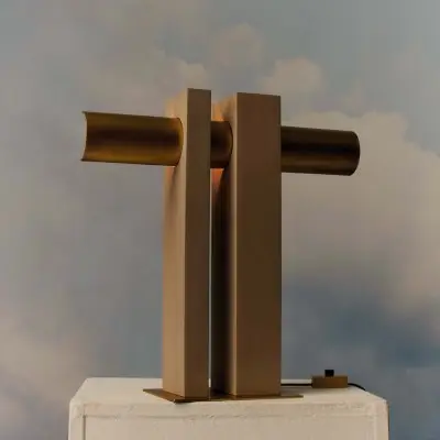 Iota Tau Pi, trois lampes, un retour à un essentiel du langage, un dialogue hors du temps. L’objet est à la frontière entre la sculpture et un édifice architectural.