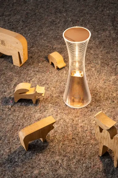 « Une lumière parfaite et jusqu’à 16 heures d’autonomie. Aujourd’hui, Come Together permet à chacun de jouer un rôle dans l’illumination de l’espace dans lequel il évolue. Où qu’il soit, la lumière accompagne l’utilisateur, mettant à son service de grandes performances techniques. Dans l’optique de pouvoir se l’approprier, Come Together a été imaginé comme un outil indispensable, capable d’accompagner l’homme dans son environnement. Le corps de ce luminaire hors normes, est une machine optique transparente avec des gradients habilités à transporter la lumière et à la distribuer. Tel un canal de lumière, il allie légèreté et matériaux de pointe, afin d’incarner le nouvel objet nomade intelligent des hommes. »