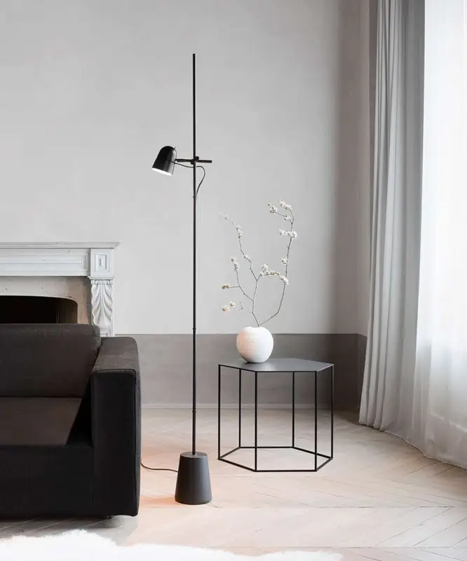 Dans la version de sol, Counterbalance conserve le réflecteur en aluminium orientable et réglable en hauteur grâce à un simple mécanisme coulissant le long de la tige.