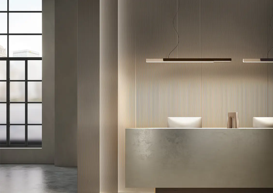« Une fusion entre forme et fonction est tracée par deux éléments linéaires de différentes tailles qui encadrent le diffuseur blanc en se superposant l’un sur l’autre comme les pétales d’une fleur. Grâce aux différentes combinaisons de finitions, Dala Linear s’intègre élégamment dans les espaces collectifs et résidentiels. »