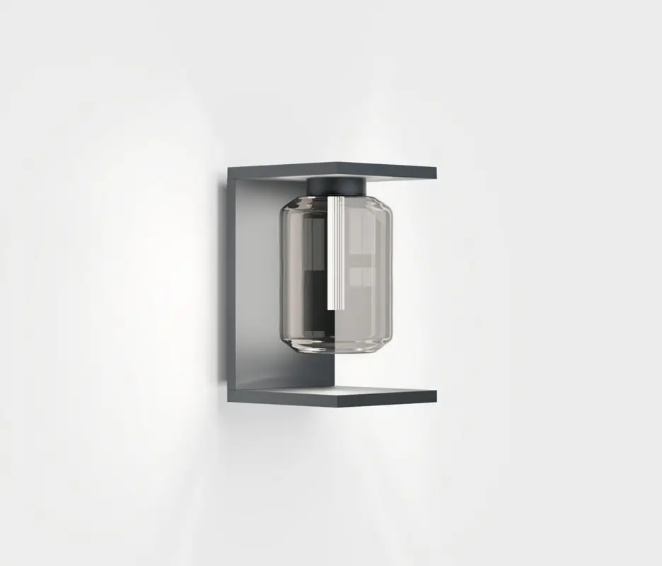 « La particularité de cette interprétation moderne d’une lanterne traditionnelle réside dans le fait qu’elle combine un cadre de moulage en aluminium en ligne droite avec un corps en verre soufflé. Incomparable avec la tige acrylique réfléchissante profilée qui semble flotter dans le verre teinté gris. »