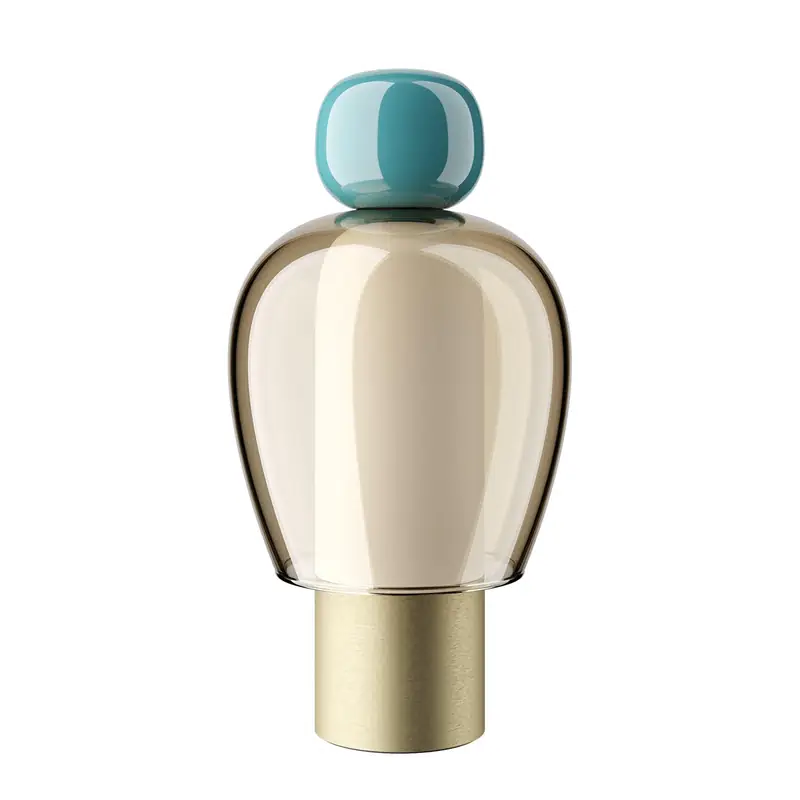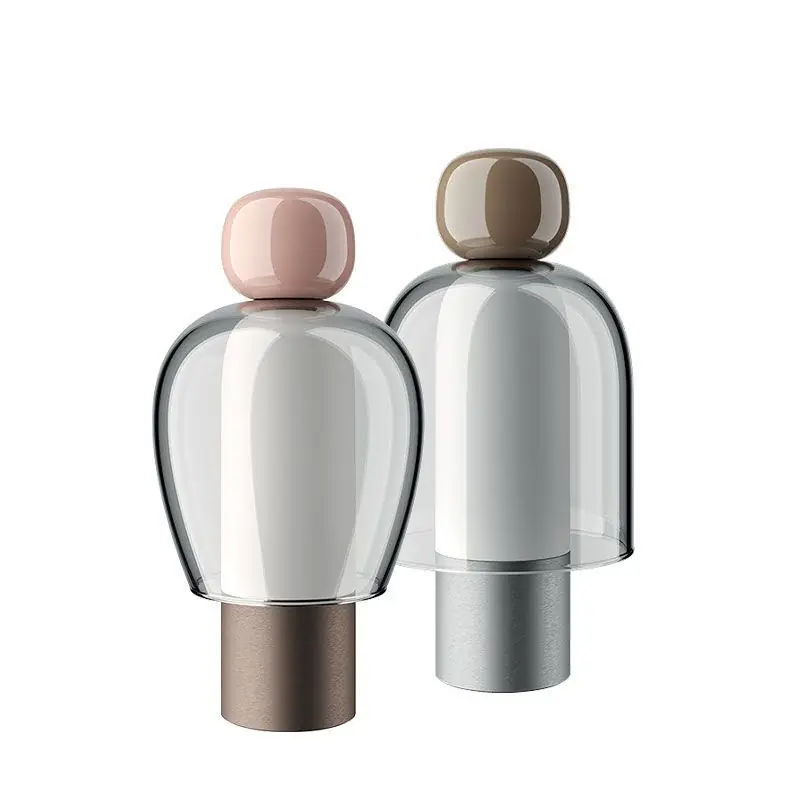 « Avec une forme sculpturale rappelant la forme des cloches, tel un ensemble de personnages sympathiques rappelant des poupées, les lampes portables et rechargeables Easy Peasy reflètent dans leur nom un esprit ludique. Easy Peasy surprend par la richesse de ses détails, alliant sens et fonctions. La diversité tactile de ses surfaces, où brillants et transparents, métal et verre cohabitent dans un contraste captivant, est accentuée par des combinaisons de couleurs sophistiquées et contemporaines, tandis que le pommeau est l’élément clé dans lequel les couleurs, les gestes innés et la maîtrise des fonctions technologiques coexistent«