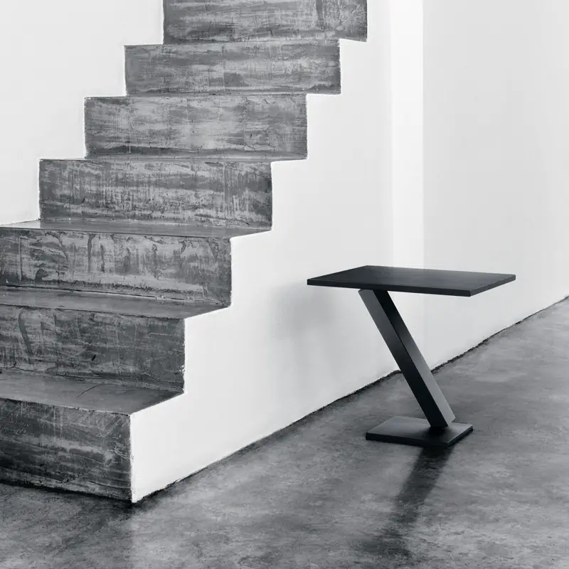 Finition fer brut, stone ou métal et plateau en verre disponibles.