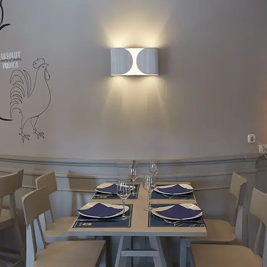 « Cette lampe, qui se réduit à une feuille de métal repliée sur elle-même, est un concentré de simplifications. Le charme de cet objet tient à sa simplicité et au naturel du geste formel caractérisé par un élan poétique. La lumière diffuse qui émane de l’intérieur souligne, par contraste, les deux bords arrondis qui tendent à se rejoindre au centre en se repliant.(…) ».