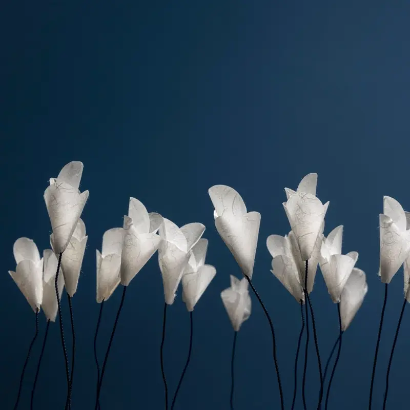 Comme son nom l’indique, For You est une lampe destinée à être offerte. Inspirée de la légèreté d’une fleur des champs, elle a une petite base en laiton et une fine tige recouverte de tissu bleu, qui peut être façonnée à sa guise à l’arrivée de la lampe, lui donnant ainsi un caractère personnel. Les pétales en papier de riz, facilement remplaçables, entourent une carte LED dédiée, qui émet une lumière chaude de couleur ambre. La lampe est équipée d’un push-dimmer intégré, grâce auquel vous pouvez régler la quantité de lumière souhaitée.