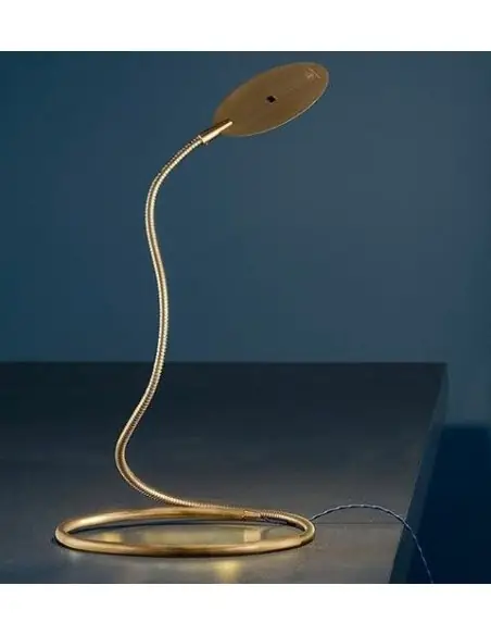 La lampe sinueuse Herem se caractérise par une base rigide d’où naît un bras flexible malléable, qui supporte une plaque ovale mince où est caché un panneau à LEDs avec variateur d’intensité touchless.