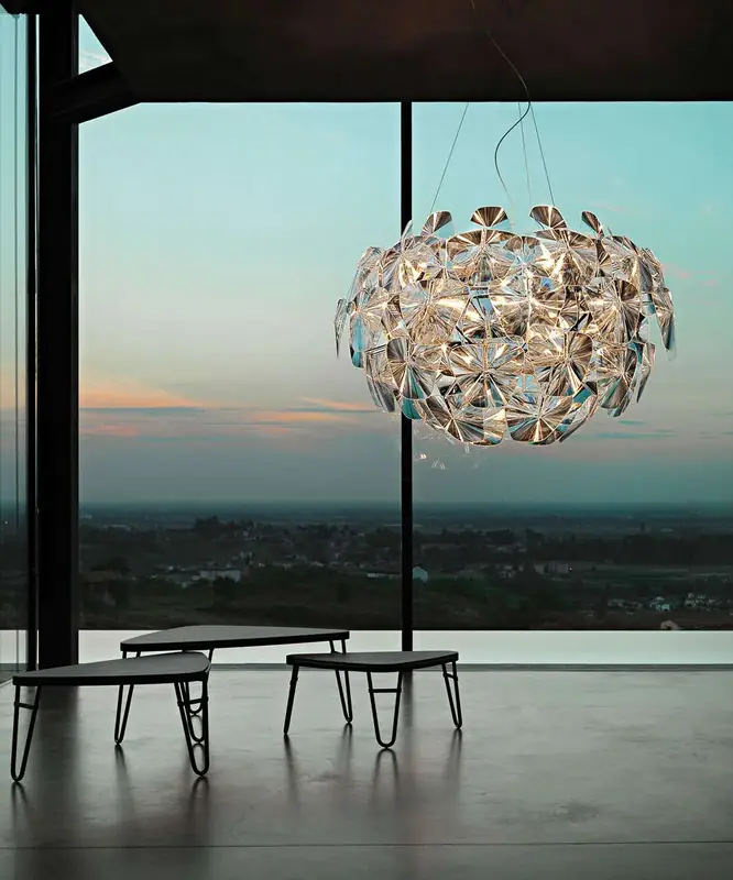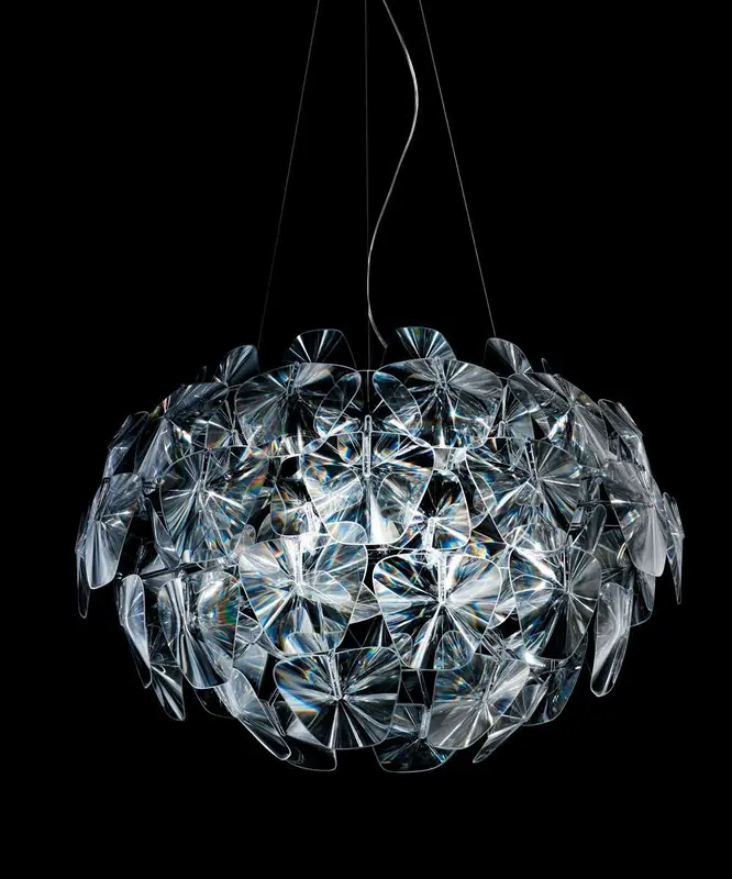 « Incroyablement légère et facile à démanteler, Hope fait revivre la magie des chandeliers traditionnels, réinterprétés avec des technologies modernes sophistiquées et des matériaux contemporains. Les lentilles Fresnel Polycarbonate Fresnel multiplient la lumière, créant une atmosphère agréable, pétillante et festive. »
