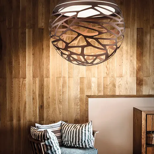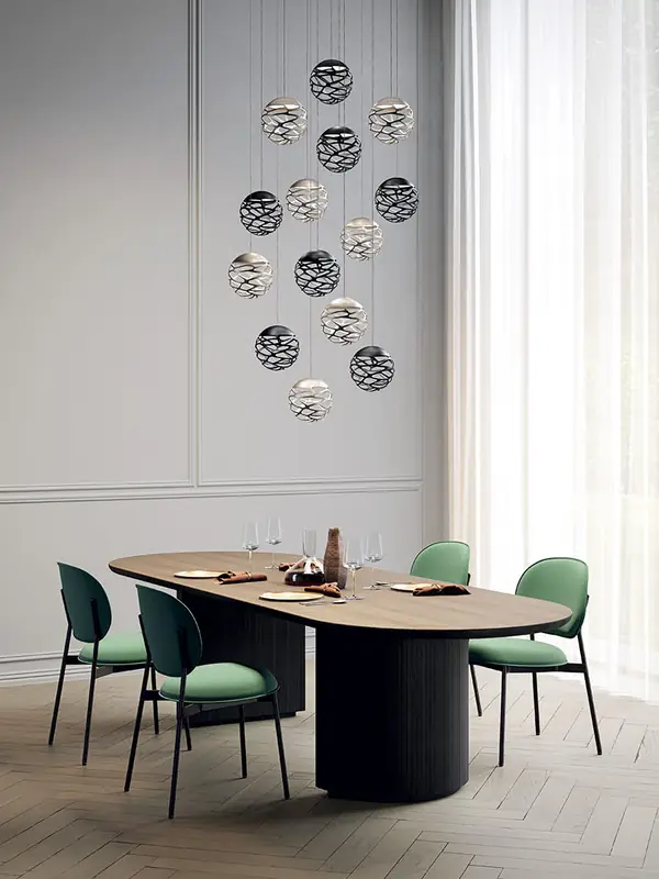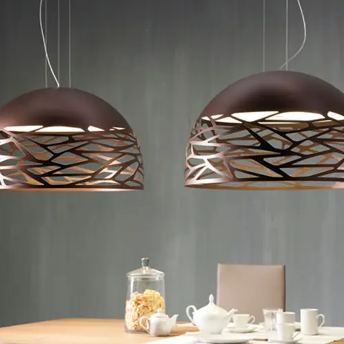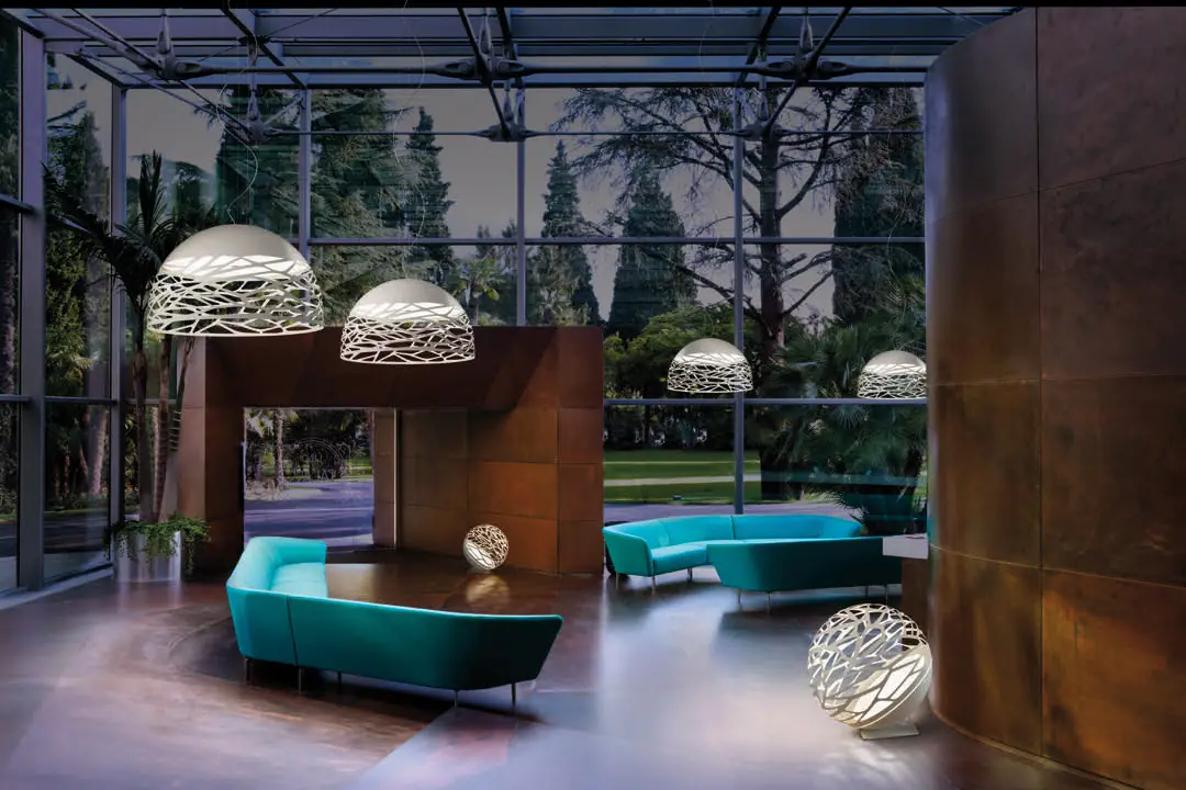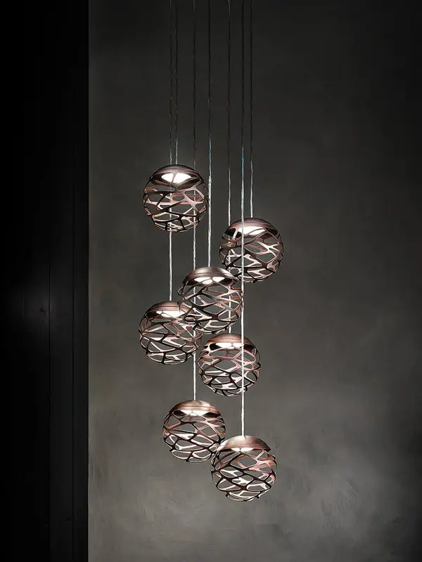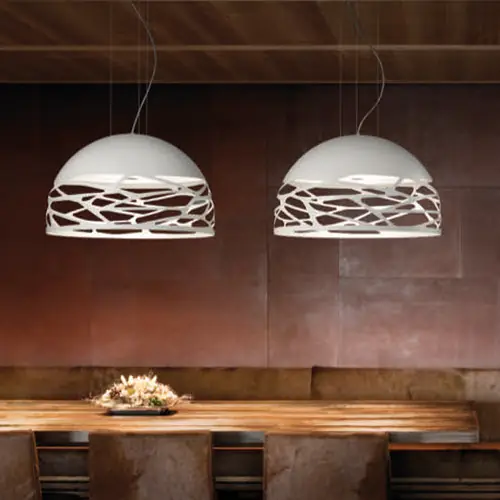 Une beauté séduisante avec une personnalité audacieuse grâce à des découpes laser fortes et précises qui éclaircissent le métal de l’abat-jour et créent un jeu intrigant d’ombre et de lumière. Kelly est une famille de suspensions et d’appliques aux multiples facettes qui se démarque avec élégance dans n’importe quel environnement de vie grâce à la variété de formes et de finitions disponibles.