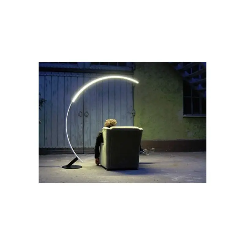 « Kyudo est la voie de l’arc, discipline millénaire inspirée de la philosophie zen. Et comme un arc de lumière, la lampe sur pied transmet des sensations d’équilibre et d’élégance. La séquence continue de LEDs trace un ruban lumineux qui peut être positionné au plaisir, grâce à deux arcs qui composent la structure et glissent l’un sur l’autre. »