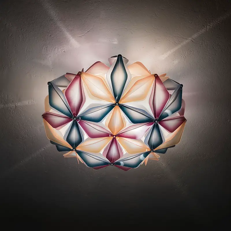 « Inspirée du célèbre symbolisme de la Fleur de Vie, La Vie est synonyme d’énergie et d’harmonie. Dans un langage symbolique efficace, dans lequel toutes les configurations que peut avoir la matière qui compose l’univers – des atomes aux galaxies – se retrouvent, les énergies et les fréquences de la vie sont enfermées, sous des colorations vives et des couleurs du renouveau. »