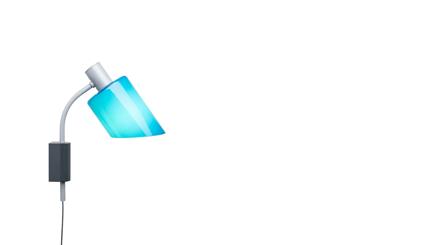 De la nécessité d’éclairer les visages reflétés dans le miroir d’un meuble conçu pour la célèbre verrerie française Boussois, Charlotte Perriand crée en 1965 la version murale de Lampe de Bureau. À l’intérieur du diffuseur, le blanc préserve la couleur naturelle de la lumière, tandis qu’à l’extérieur, les finitions du verre moulé translucide apparaissent pures et brillantes.