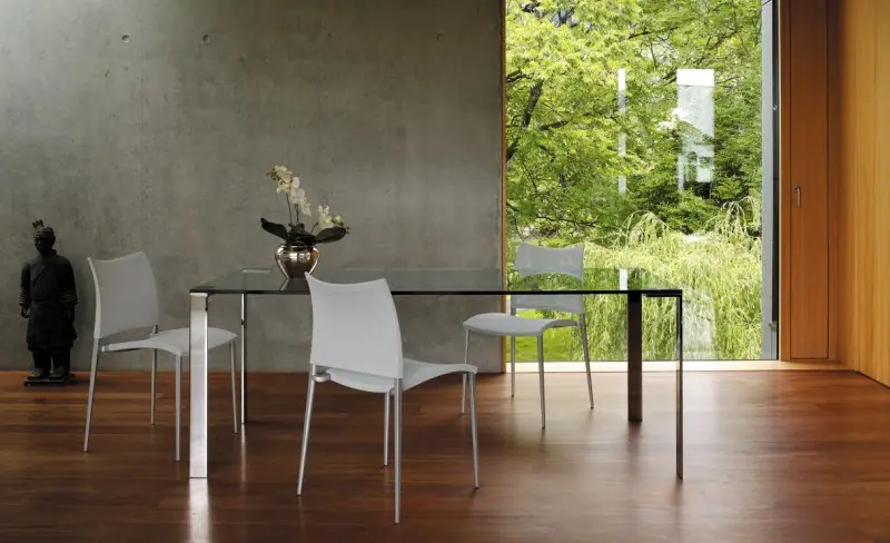 « Des tables qui sont une synthèse de transparence et de matière, de légèreté et de solidité. Un résultat esthétique surprenant généré par un design extrême joué sur une combinaison de matériaux et de technique. »