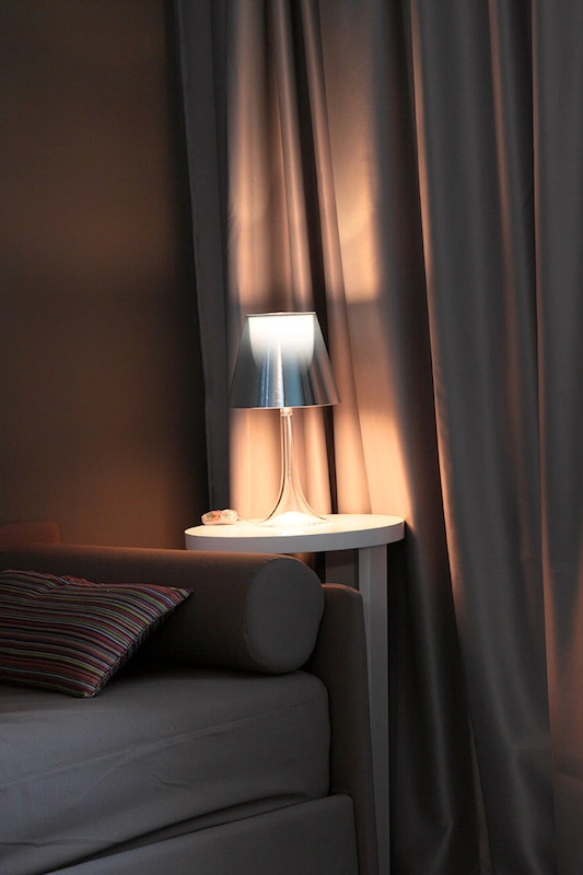 « Une touche de coquetterie féminine dans un style ultra-contemporain pour Miss K, lampe de table à lumière diffuse qui se distingue par sa base aux lignes fluides et lisses et son corps rainuré en surface. »