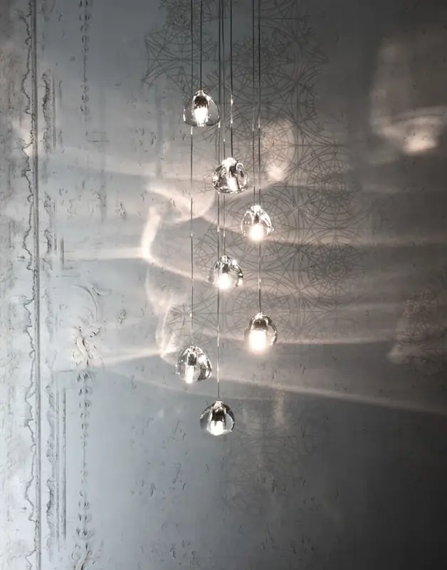 Inspiré par les réfractions lumineuses tranquilles et envoûtantes créées par l’eau, Mizu est une suspension personnalisable de Terzani. Comme les gouttelettes d’eau, il n’y a pas deux Mizu qui se ressemblent, chaque forme de cristal est unique et méticuleusement faite à la main. N’utilisant que le cristal le plus clair, Mizu émule parfaitement la réfraction de la lumière de l’eau, projetant des motifs étonnants dans la pièce, rappelant l’eau qui coule.
