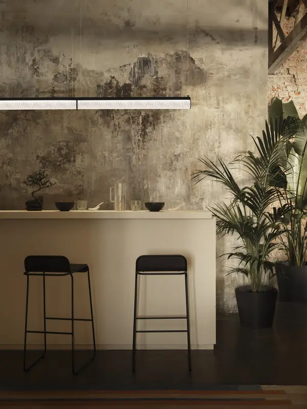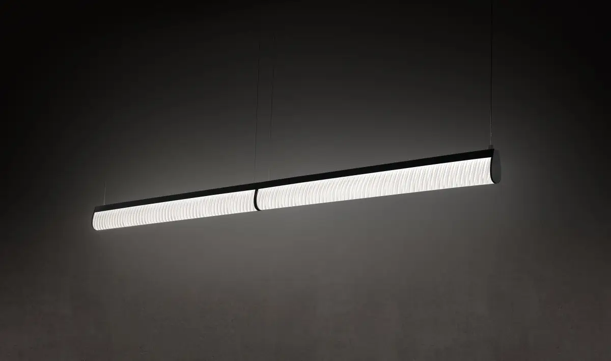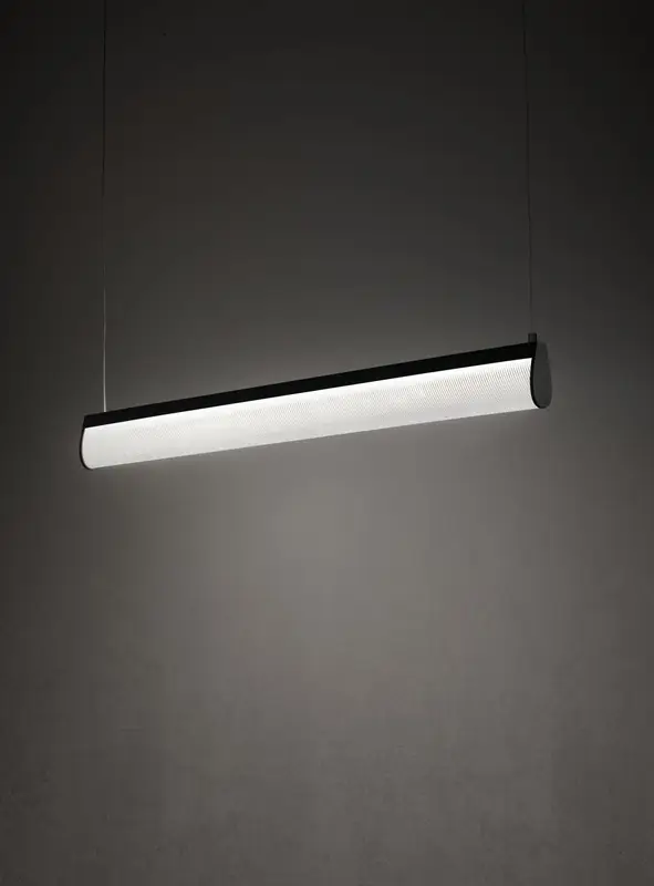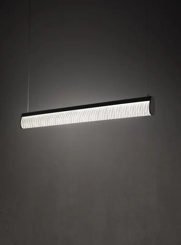Modula joue avec la Lumière de manière inattendue et polyvalente. Les effets Plissé, inspirés des colonnes des cloîtres médiévaux, et Crystal, qui rappelle une texture de strass brillants, sont ce qui fait de la lampe une véritable explosion de créativité. L’expression lumineuse est amplifiée par une ligne de lumière homogène qui court le long de la dorsale. Modula est conforme à la norme UNI EN 12464-1:2011, qui établit les exigences en matière d’éclairage des lieux de travail pour répondre aux besoins de sécurité et de confort visuel.