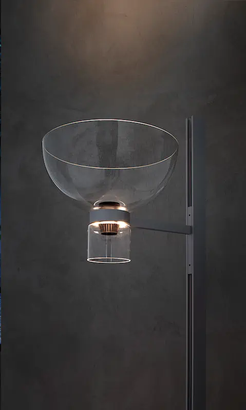 Les deux formes de lampes intègrent deux sources LED : une lumière principale haute performance (soit focalisée ou Diffusé) et une lueur ambiante qui illumine le verre lui-même, donnant au matériau transparent une qualité lumineuse presque éthérée.