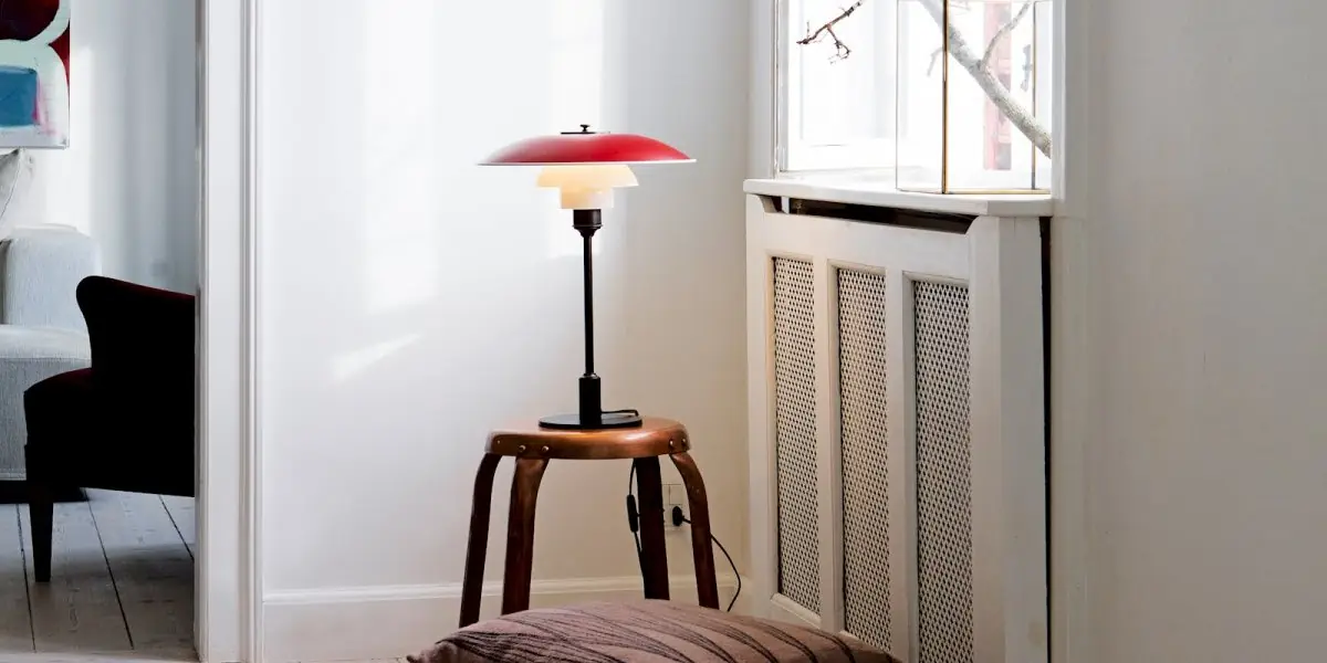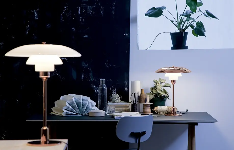 Les lamelles intérieures sont 100 % anti-éblouissantes et reposent sur un ensemble de trois abat-jour réfléchissants qui dirigent la majeure partie de la lumière vers le bas. La surface inférieure peinte en blanc de l’abat-jour supérieur dirige légèrement la lumière vers le bas. Les deux abat-jour inférieurs en verre opalisé soufflé garantissent une grande surface de lumière anti-éblouissante, ce qui permet une utilisation optimale de la source lumineuse afin d’offrir un éclairage fonctionnel et confortable. Les abat-jour en verre opalisé sont polis à l’extérieur et mats à l’intérieur.