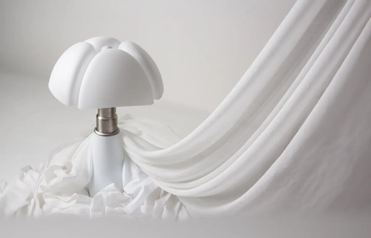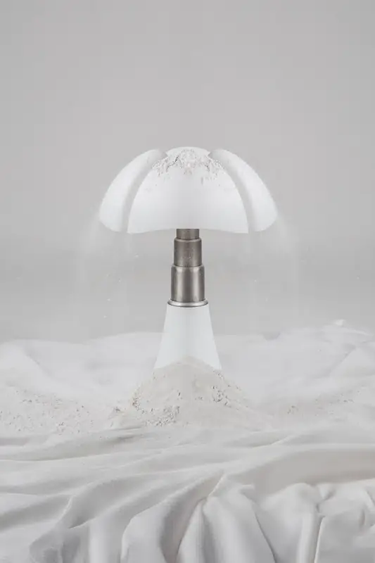 Pour son 60ème anniversaire, Pipistrello est proposé dans une nouvelle finition qui valorise la pureté de ses lignes. Nous avons choisi, pour le cône et le bouton, un blanc mat non coloré, discret, doux, enveloppant, évoquant l’atmosphère d’un paysage recouvert par le silence de la neige et incitant à la sérénité et à la réflexion. Le diffuseur en méthacrylate opalin blanc satiné, ainsi que le télescope et l’anneau en acier, renforcent la nouvelle matérialité.
