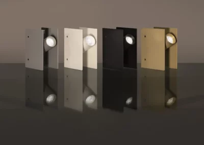 A l’intérieur d’une structure métallique, un spot performant est alimenté par une batterie pour un éclairage d’accentuation. Positionnement à l’horizontale ou à la verticale pour une plus de maniabilité. Variable.