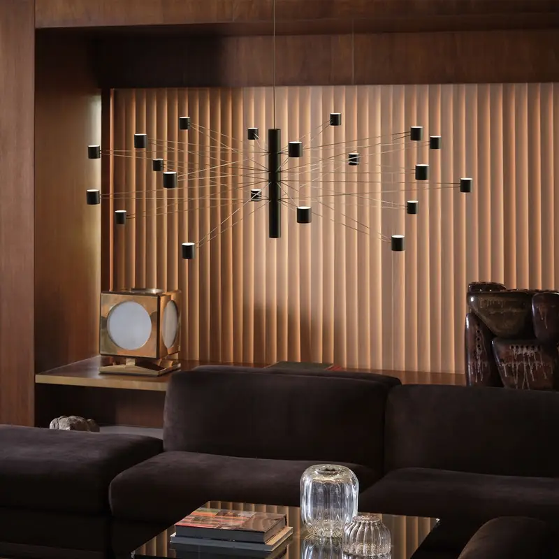 Polar est l’essence de la conception intelligente, où fonctionnalité et polyvalence se rencontrent dans un système modulaire unique. Ses bras métalliques interchangeables dessinent des configurations lumineuses autour d’un axe central, créant des géométries pures qui remplissent l’environnement. Un exercice créatif qui éclaire et donne forme à de nouvelles visions.