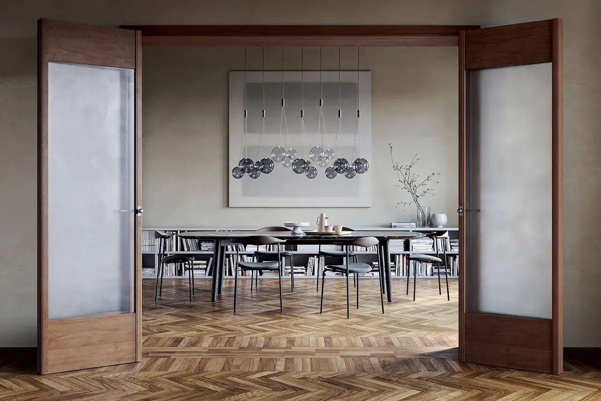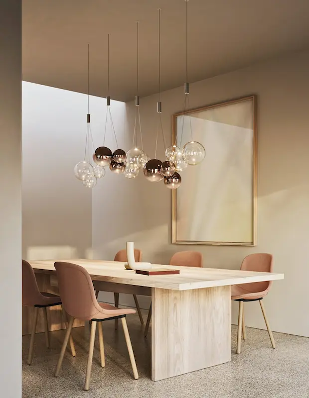 Lampe suspendue légère en verre soufflé, Random est composée de trois diffuseurs ronds de différentes tailles qui forment un tout simple et accrocheur. Les luminaires forment une composition poétique comme des bulles de savon, rehaussée par les finitions contemporaines qui ajoutent une touche de caractère et d’originalité.