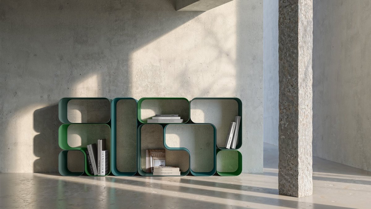 Des éléments qui tournent dans l’espace pour créer des formes carrées, rectangulaires, un L et un Z qui s’unissent parfaitement les uns aux autres. Particulièrement innovant est le système d’assemblage des pièces qui ne nécessite pas de vis ou autres éléments de fixation : le pouvoir attractif de petits aimants de seulement 8 mm d’épaisseur est suffisant pour maintenir la structure ferme et stable.