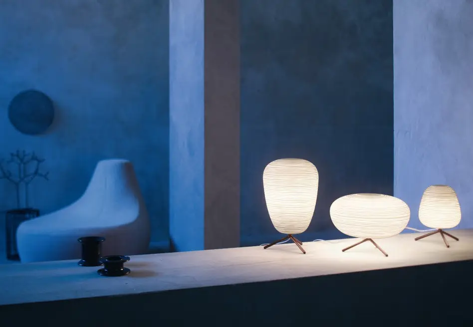 « Un défi: traduire la légèreté du papier washi des lanternes orientales dans un groupe de lampes en verre. Une telle création n’est possible que grâce à l’union de l’expérience Foscarini et de l’habileté des maîtres de Murano. Une nouvelle famille de lampes de table où le diffuseur, défini par le volume et la texture du verre, est au premier plan.
