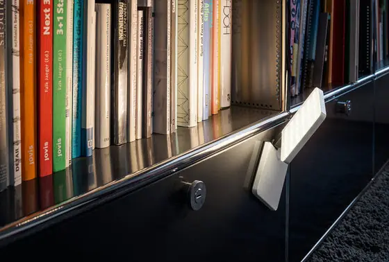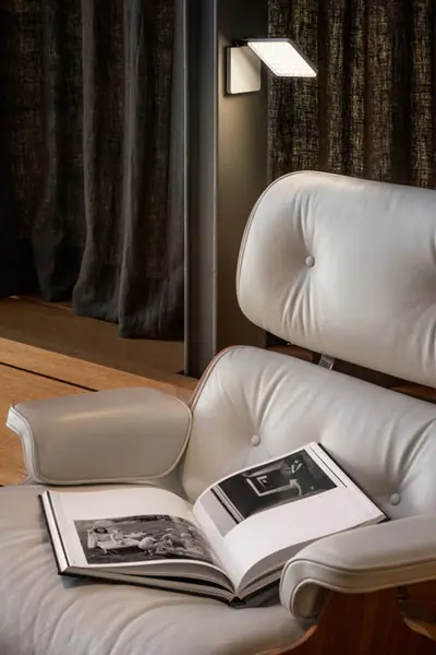Aimants intégrés dans la base de la lampe pour des possibilités de positionnement infinies. Interrupteur principal dans la base du luminaire; grâce à sa commande gestuelle sans contact, le luminaire peut être commandé et varié intuitivement. Il dispose également d’une grande mobilité grâce à la tête articulée 3D.