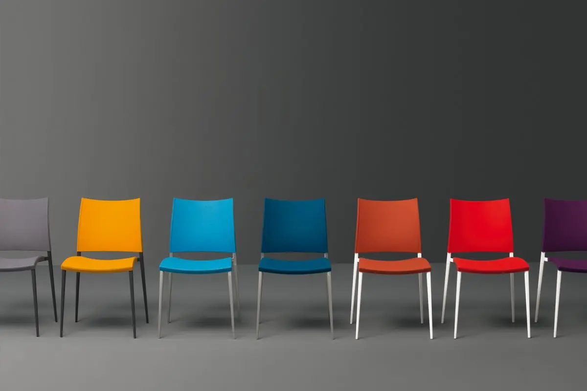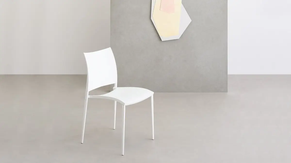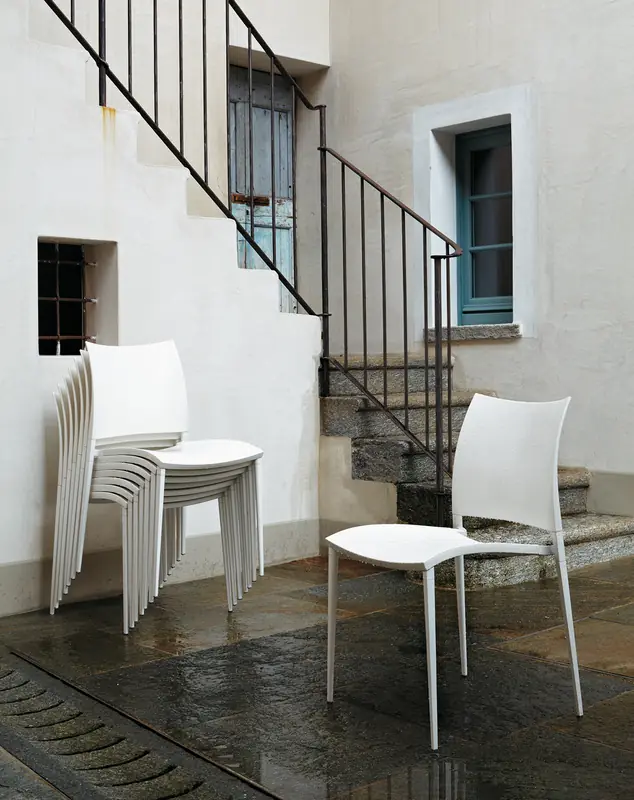 Légère, empilable; disponible en version pour l’extérieur.