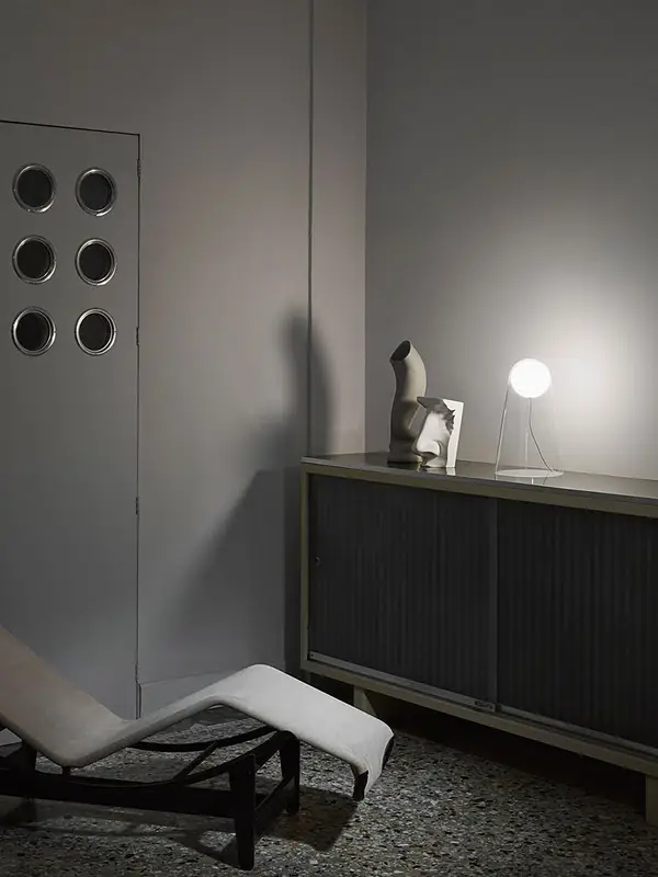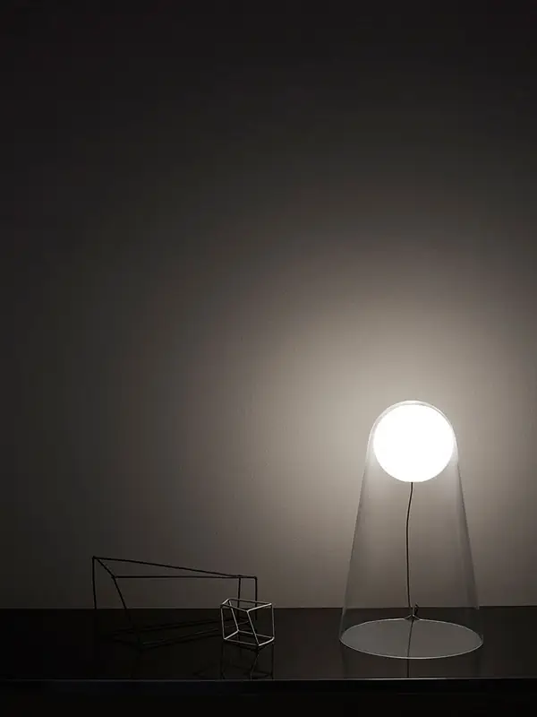 « Une sphère lumineuse fluctuant comme suspendue dans le vide. Une cloche de verre soufflé la protège et retient le globe de lumière qui semble sur le point de prendre son envol dans l’espace. Satellight est une lampe dont le langage simple et poétique va droit au cœur. »