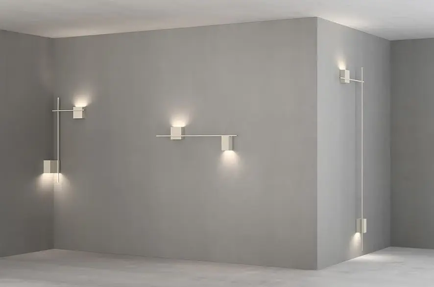 Une collection d’appliques murales combinant lumière directe et indirecte à travers des volumes cubiques formant des sculptures intégrées à l’architecture de chaque espace.