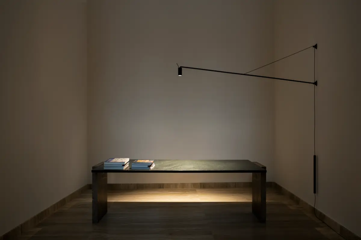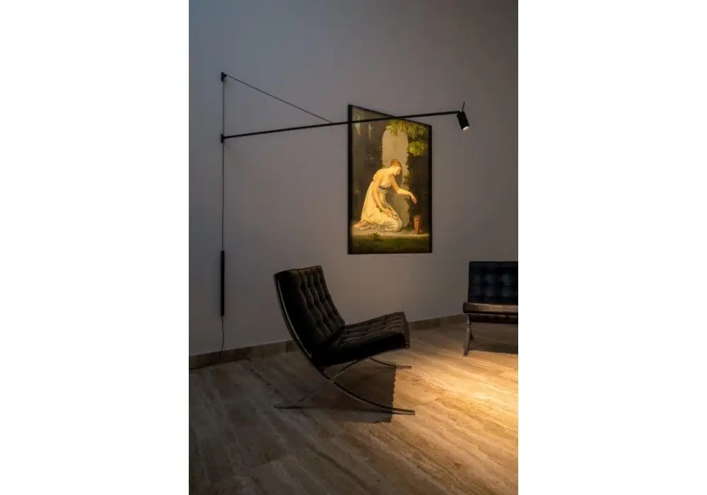 Un symbole graphique, des lignes essentielles qui accentuent la grande souplesse de mouvement et de fonctionnalité de la lampe Swan. Le bras de la lampeest extensible de 134 cm à 184 cm tout en préservant la linéarité et la rigueur du design. La source lumineuse orientable offre un éclairage précis et ponctuel. Le contrepoids, élément essentiel du design, est recouvert de cuir Testa di Moro.