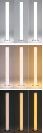 Lampadaire led avec changement de couleur de 2500 à 6000°K. La température de couleur est réglable graduellement et variable via télécommande. Le verre acrylique en blanc est uniformément illuminé et produit une lumière très douce en fonction du réglage. 70W – 7500lm