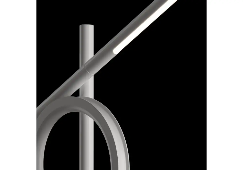 La lampe se compose de deux éléments principaux : une LED linéaire avec un gradateur intégré contenu dans le tube lumineux, qui interagit avec le deuxième élément, l’anneau sur le socle. Grâce à la combinaison de tension, de friction et d’équilibre, l’utilisateur peut créer n’importe quel effet d’éclairage fonctionnel ou esthétique souhaité et d’innombrables scénarios.