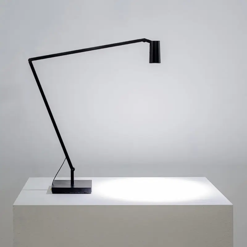 « J’ai été inspiré par l’esthétique sculpturale et cinétique des bras articulés. La simplification radicale met en évidence ces esthétiques. Comme les joints fonctionnent sans fils visibles ni palans à câble, Untitled est réduit à quelques lignes précises. Le résultat est une lampe de bureau intemporelle et graphique, caractérisée par sa flexibilité. » B. Osnann